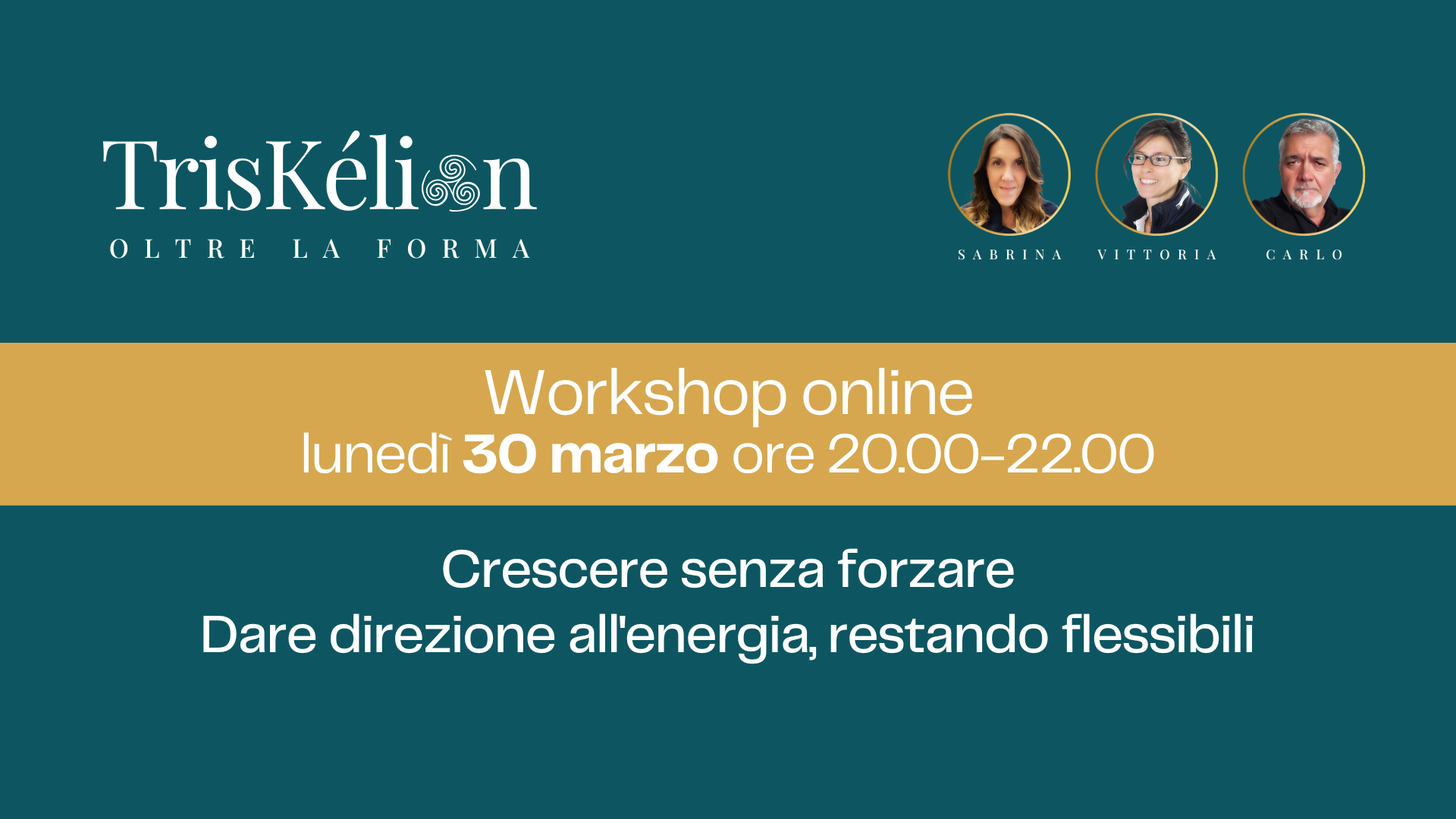 Siamo Sabrina, Vittoria e Carlo. Da anni accompagniamo persone in percorsi di consapevolezza e trasformazione. TrisKélion - Oltre La Forma nasce dal nostro incontro, dal desiderio di creare uno spazio potente, accogliente e reale, in cui ogni partecipante possa ritrovare il proprio centro e camminare nel mondo con più coerenza e libertà.